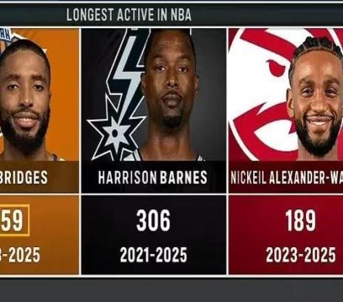现役连续出勤纪录!布里奇斯连续出战559场断层领先